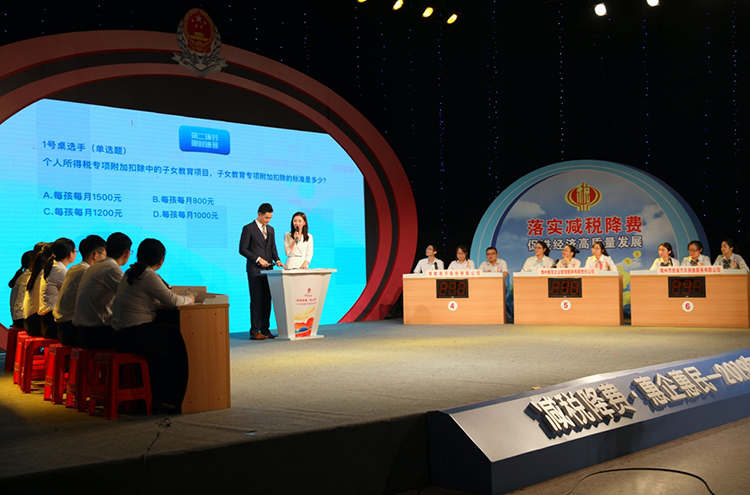 4月18日下午,由國家稅務(wù)總局梅州稅務(wù)局、梅江區(qū)稅務(wù)局聯(lián)合主辦,梅州市廣播電視臺承辦的2019年梅州市“減稅降費(fèi) 惠企惠民”稅收知識競賽決賽在市電視臺演播中心正式舉行。