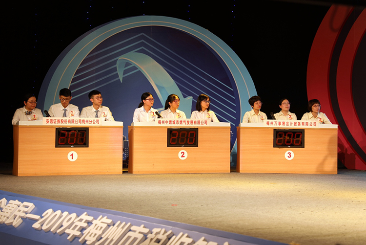 本次競賽在前期廣泛發(fā)動梅江轄區(qū)內(nèi)3萬多戶納稅戶參賽的基礎(chǔ)上,選出各大行業(yè)代表組成18支參賽隊(duì)伍進(jìn)入初賽。經(jīng)過三場初賽的比拼,安信證券股份有限公司梅州分公司、梅州中燃城市燃?xì)獍l(fā)展有限公司、梅州萬事易會計(jì)服務(wù)有限公司、博敏電子股份有限公司、梅州智友企業(yè)管理服務(wù)有限責(zé)任公司、梅州市俊誠汽車銷售服務(wù)有限公司6支參賽隊(duì)伍進(jìn)入到今天的決賽。 經(jīng)過一個多小時比拼,梅州中燃城市燃?xì)獍l(fā)展有限公司以325的成績獲得了知識競賽第一名。梅州萬事易會計(jì)服務(wù)有限公司、梅州市俊成汽車銷售服務(wù)有限公司獲得第二名,安信證券股份有限公司梅州分公司、博敏電子股份有限公司、梅州智友企業(yè)管理服務(wù)有限公司等3支代表隊(duì)伍獲得第三名。