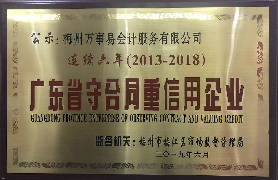 名稱:2013-2018年連續(xù)六年守合同重信用